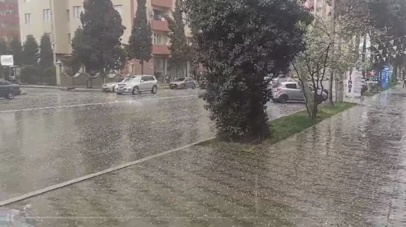 AZƏRTAC-ın bölgə müxbiri xəbər verir ki, bu gün saat 18:00 radələrində yağan güclü yağışdan sonra şəhərə dolu düşüb. Təxminən 5 dəqiqə yağan dolu daha sonra leysan xarakterli yağışa çevrilib.